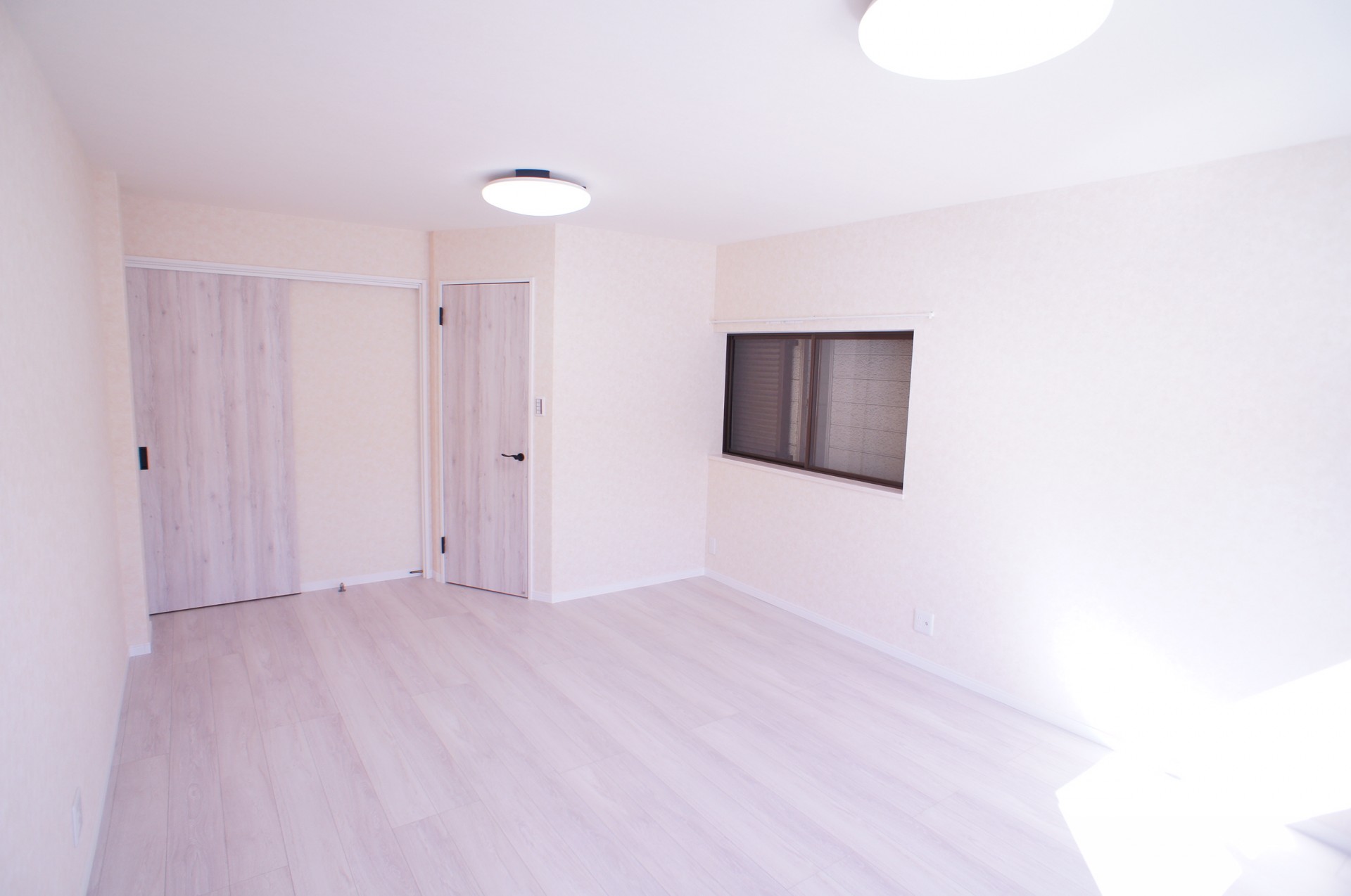 細長い敷地で3面が建物に囲まれてる為昼間でも薄暗かったので中央の部屋を奥の部屋と一つにしたり、間の壁を少なくしたり、内装は白を基調にし、光の反射で明るくするようにしました。