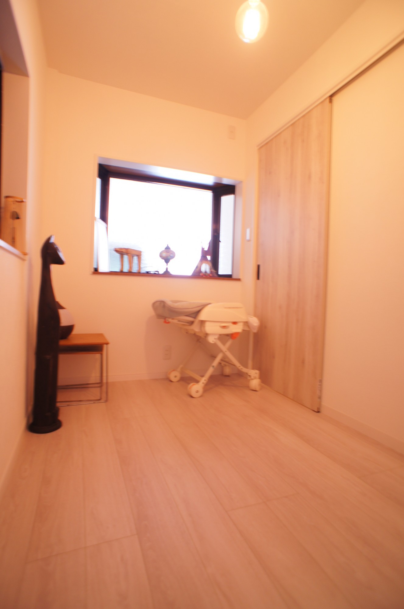 細長い敷地で3面が建物に囲まれてる為昼間でも薄暗かったので中央の部屋を奥の部屋と一つにしたり、間の壁を少なくしたり、内装は白を基調にし、光の反射で明るくするようにしました。
