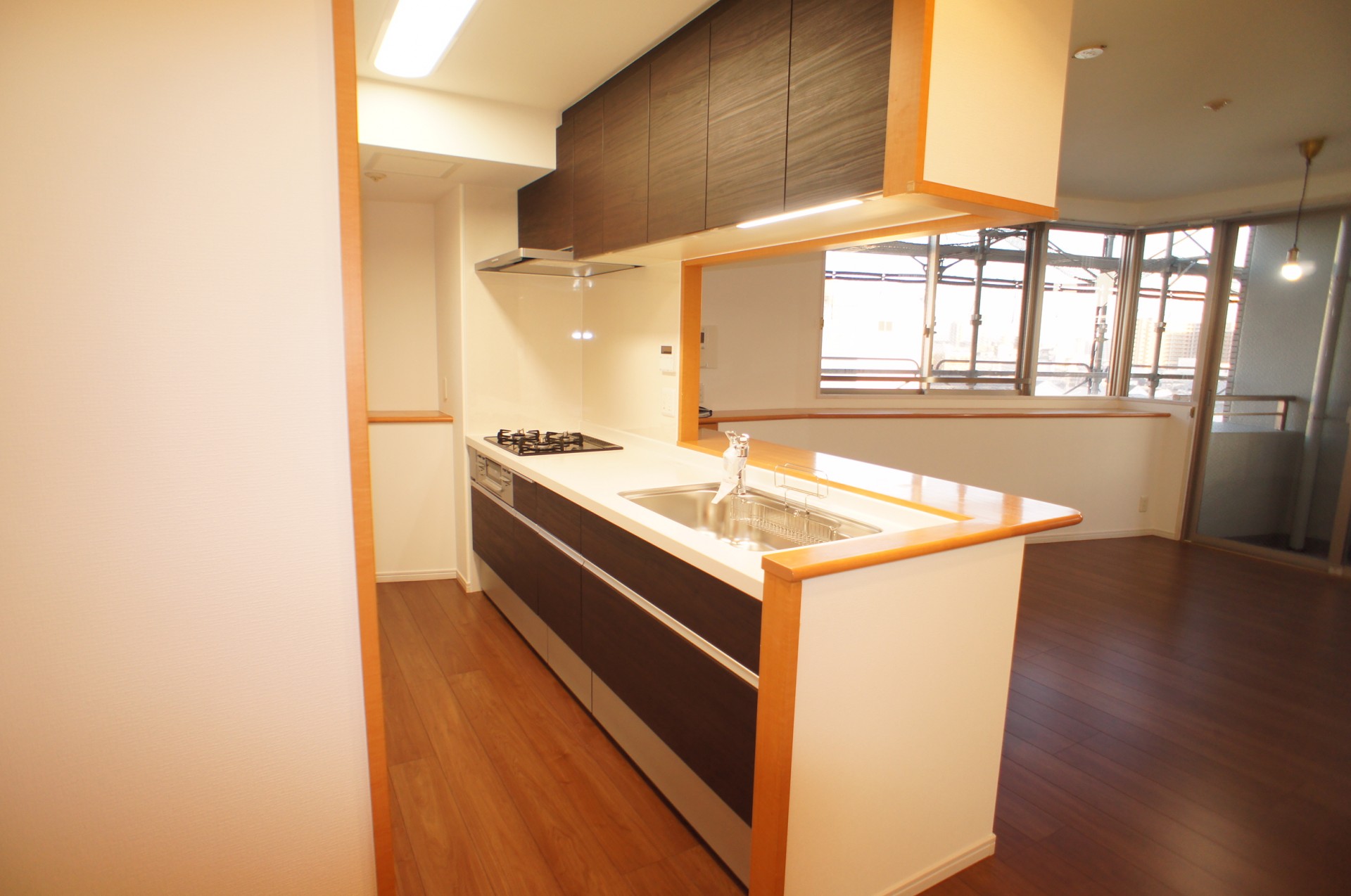 新居のインテアリアイメージを考えて家具などを用意されていたお施主様、お二人のこだわりや好きなテイストがしっかり共有できていたので床やキッチンの色等もイメージ通りになりました。