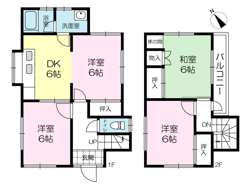 間取り 4DK( 洋室 6・6・6 帖 / 和室 6 帖 / DK 6 帖 )