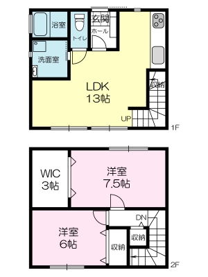 | 間取り | 2SLDK( 洋室 7.5・6 帖 / SLDK 13 帖 / ウォークインクローゼット 3 帖 ) | ||