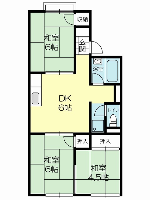 | 間取り | 3DK( 和室 6・6・4.5 帖 / DK 6 帖 ) | ||