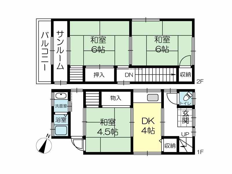 間取り | 3DK( 和室 4.5・6・6 帖 / DK 4 帖 ) | ||