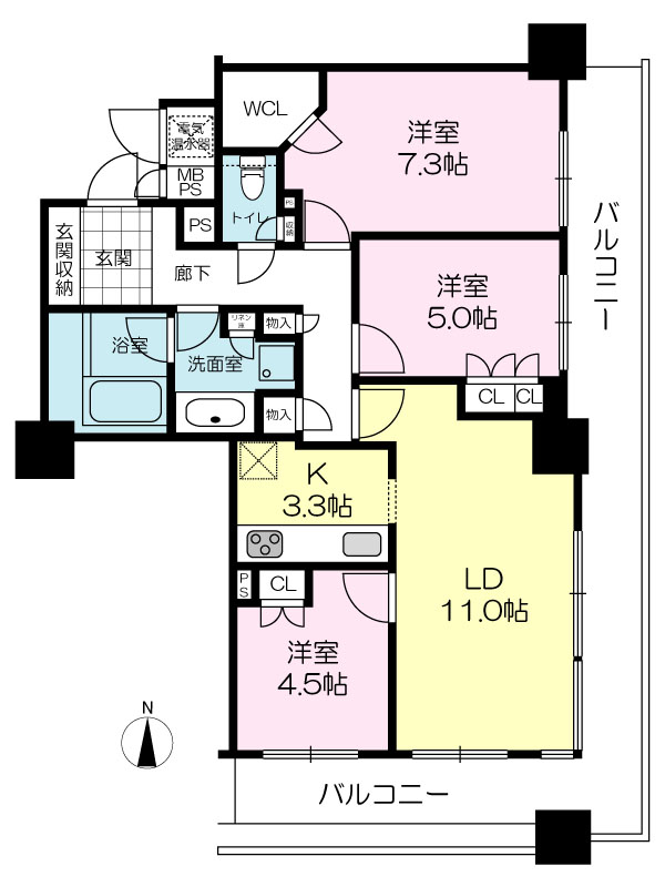 | 間取り | 3LDK( 洋室 7.3・5・4.5 帖 / LDK 14.3 帖 ) | ||