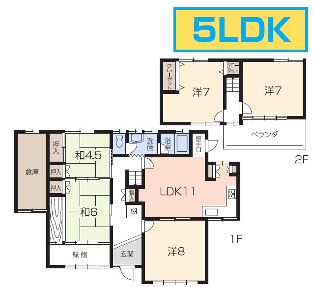 | 間取り | 5LDK( 洋室 8・7・7 帖 / 和室 6・4.5 帖 / LDK 11 帖 ) | ||
