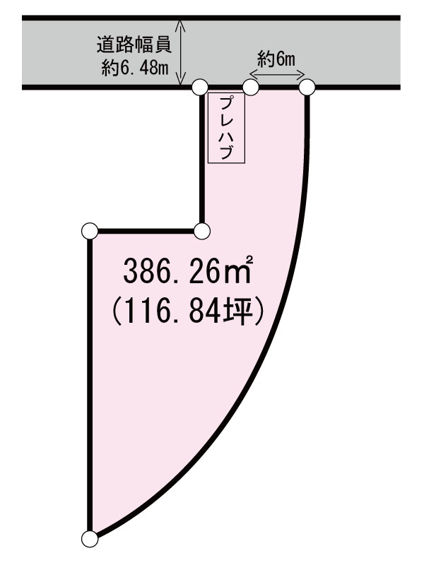 接道状況 | [ 南 / 道路幅員 約6.48m 接道幅 公道 ] |