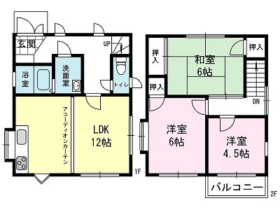 間取り | 3LDK( 洋室 6・4.5 帖 / 和室 6 帖 / LDK 12 帖 ) | ||