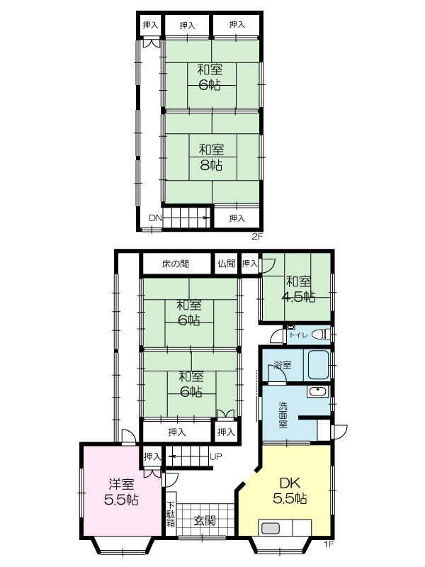 間取り 6DK( 洋室 5.5 帖 / 和室 8・6・6・6・4.5 帖 / DK 5.5 帖 )