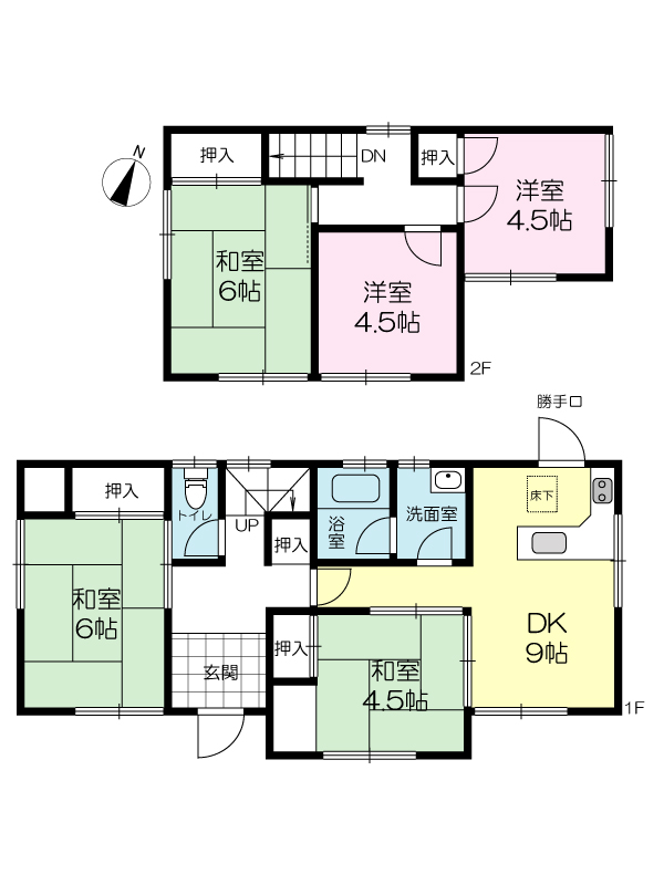 間取り 5DK( 洋室 4.5・4.5 帖 / 和室 6・6・4.5 帖 / DK 9 帖 )