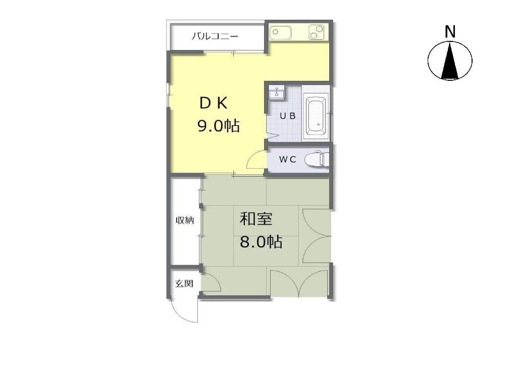 間取り | 1DK( 和室 8 帖 / DK 9 帖 ) | ||