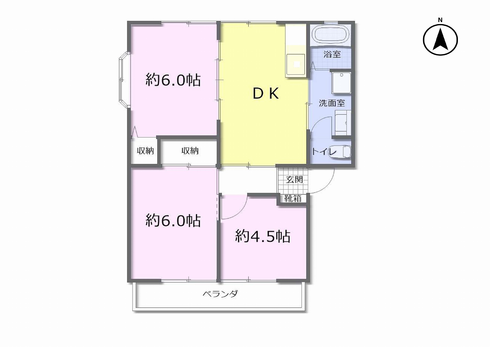 間取り | 3DK( 洋室 6・6・6 帖 / DK 7 帖 ) | ||