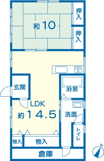 | 間取り | 1LDK( 和室 10 帖 / LDK 14.5 帖 ) | ||
