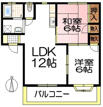 | 間取り | 2LDK( 洋室 6 帖 / 和室 6 帖 / LDK 12 帖 ) | ||