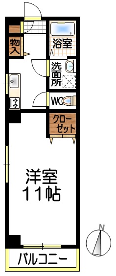 | 間取り | 1K( 洋室 11 帖 / K 3 帖 ) | ||