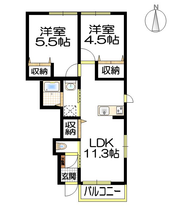 | 間取り | 2LDK( 洋室 5.5・4.5 帖 / LDK 11.3 帖 ) | ||