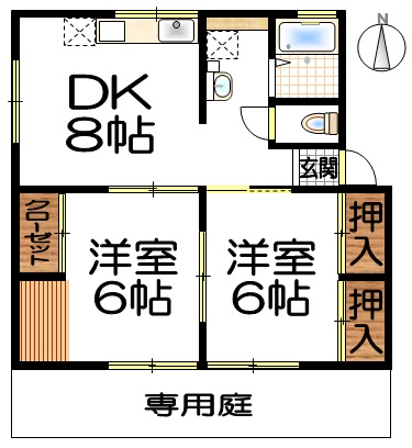 | 間取り | 2DK( 洋室 6・6 帖 / DK 8 帖 ) | ||