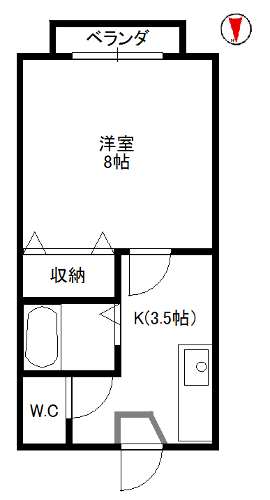 間取り | 1K( 洋室 8 帖 / K 4 帖 ) | ||