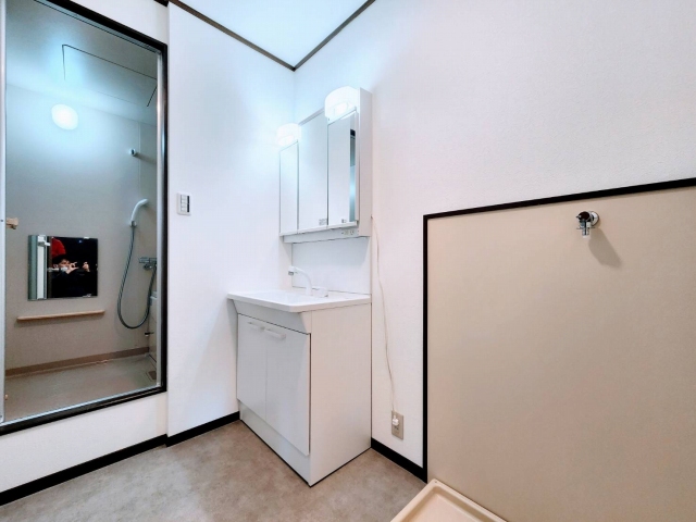 ①洗面台新調、②浴室水栓(シングルレバー)・シャワーヘッド交換