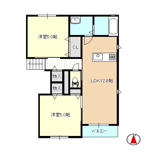 間取り 2LDK( 洋室 5・5 帖 / LDK 12.8 帖 )