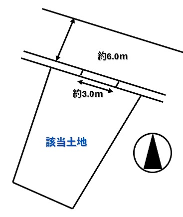 接道状況 [ 北東 / 道路幅員 約6m 接道幅 公道 約3 m ]