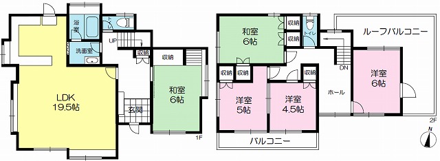 | 間取り | 5LDK( 洋室 6・5・4.5 帖 / 和室 6・6 帖 / LDK 19.5 帖 ) | ||