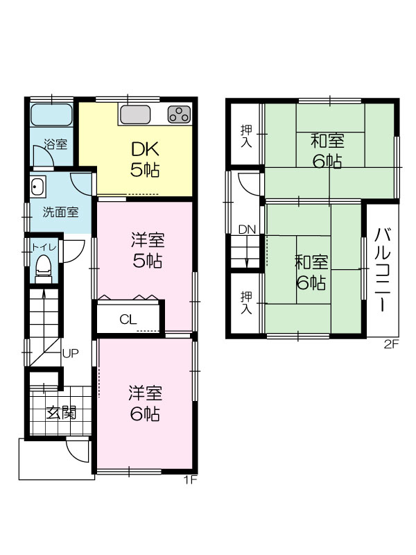 | 間取り | 4DK( 洋室 6・5 帖 / 和室 6・6 帖 / DK 5 帖 ) | ||