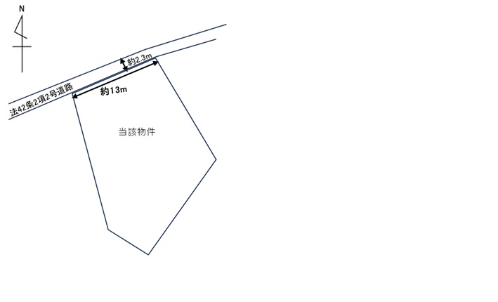 接道状況 | [ 北 / 道路幅員 約2.3m 接道幅 公道 ] |