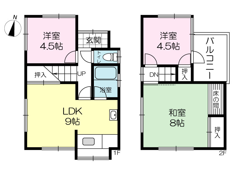 間取り | 3LDK( 洋室 4.5・4.5 帖 / 和室 8 帖 / LDK 9 帖 ) | ||