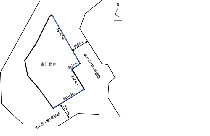 接道状況 | [ 北東 / 道路幅員 約6.4m ] [ 南東 / 道路幅員 約6.4m ] |