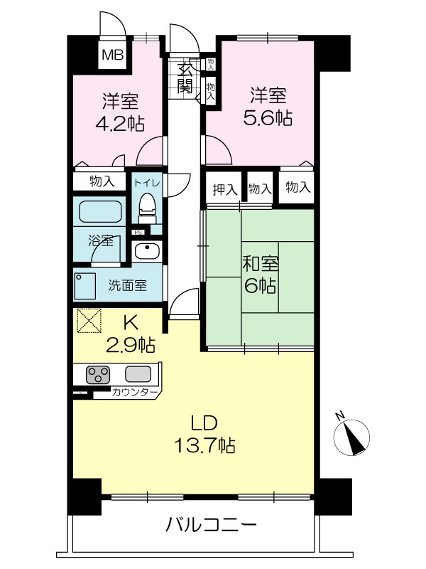 採光向き | 南西 | バルコニー向き | 南東向き |