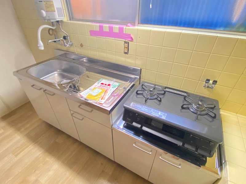セクショナルキッチン設置、キッチン換気扇交換、浴室シャワー水栓交換、洗面台交換、シャワートイレ交換等