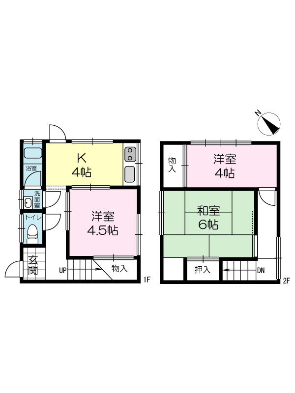 | 間取り | 3K( 洋室 4.5・4 帖 / 和室 6 帖 / K 4 帖 ) | ||