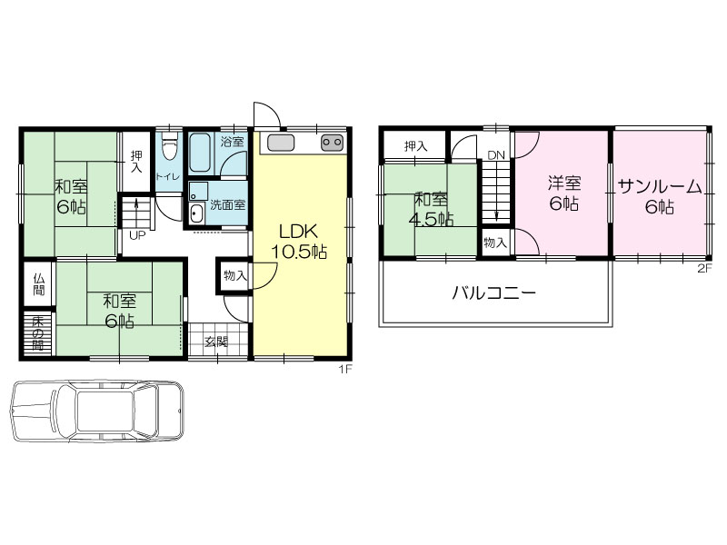間取り 4LDK( 洋室 6 帖 / 和室 6・6・4.5 帖 / LDK 10 帖 / サンルーム 6 帖 )