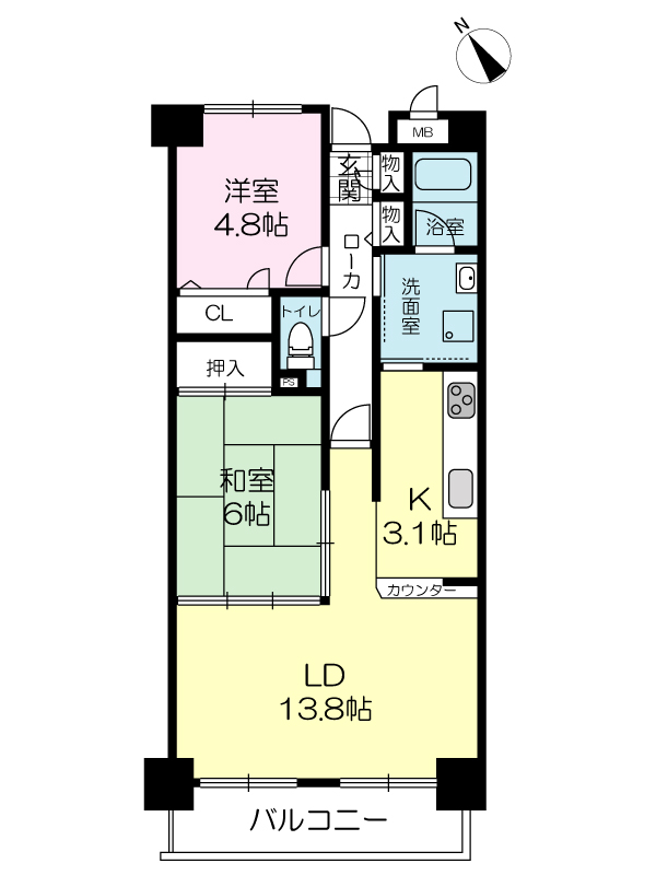 | 間取り | 2LDK( 洋室 4.8 帖 / 和室 6 帖 / LDK 16.9 帖 ) | ||