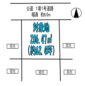 | 接道状況 | [ 北西 / 道路幅員 約6m 接道幅 公道 約13.5 m ] |