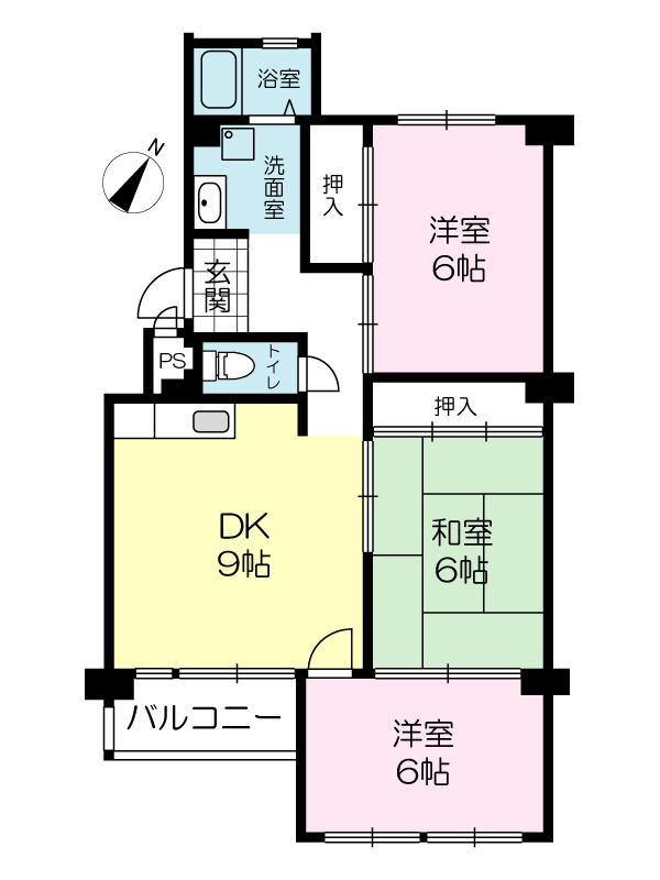 間取り 3DK( 洋室 6・6 帖 / 和室 6 帖 / DK 10 帖 )