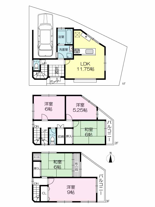 間取り 5LDK( 洋室 6・5.25・9 帖 / 和室 6・6 帖 / LDK 11.75 帖 )
