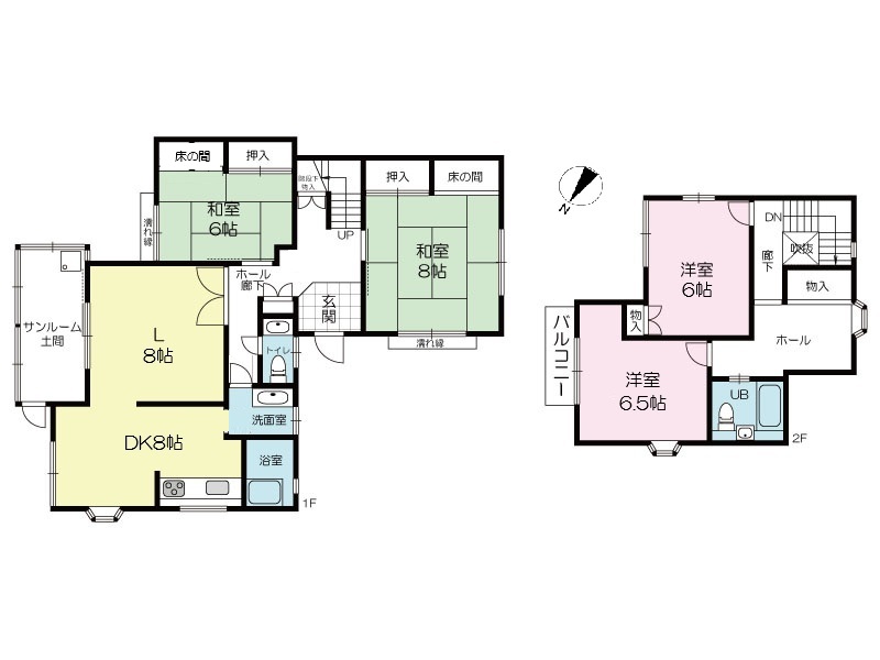 間取り 4LDK( 洋室 6・6.5 帖 / 和室 6・8 帖 / LDK 16 帖 )