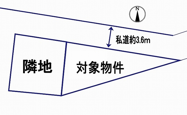 | 接道状況 | [ 北 / 道路幅員 約3.6m 接道幅 私道 約13.4 m ] |