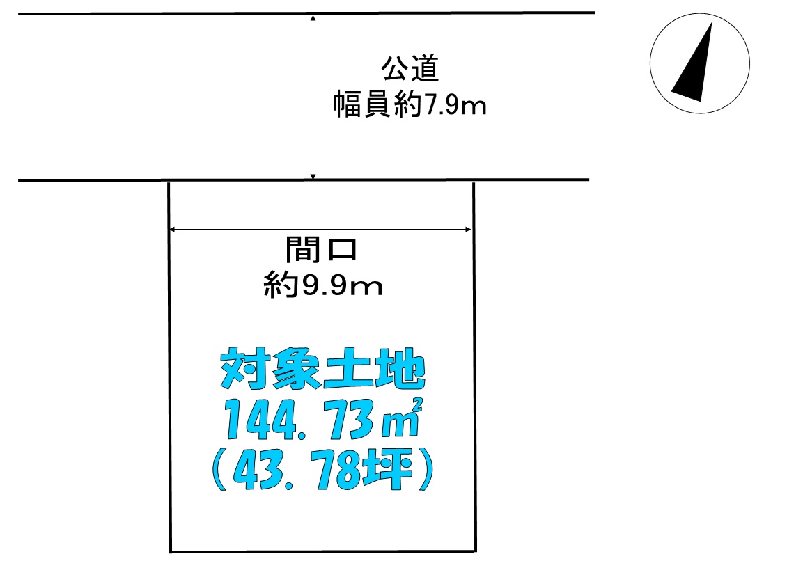 接道状況 | [ 北 / 道路幅員 約7.9m 接道幅 公道 約9.9 m ] |