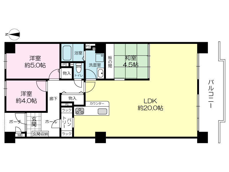 バルコニー面積 実測 18.98 ㎡ ( 5.74 坪 )