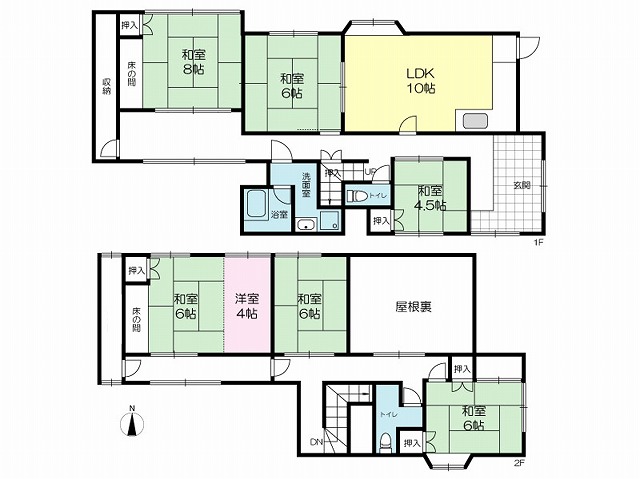 | 間取り | 7SLDK( 洋室 6 帖 / 和室 8・6・4.5・6・6・6 帖 / SLDK 10 帖 / 屋根裏収納 10 帖 ) | ||