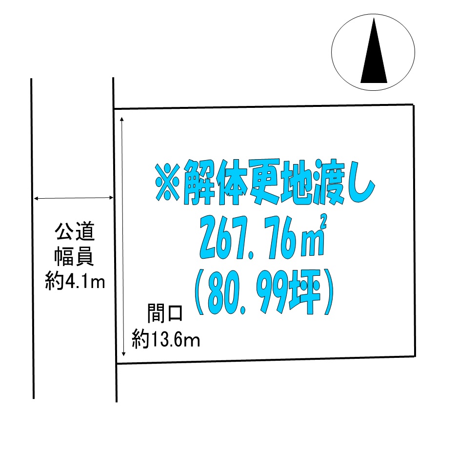 | 接道状況 | [ 西 / 道路幅員 約4.1m 接道幅 公道 約13.6 m ] |