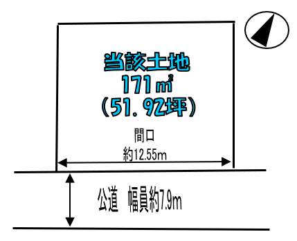 | 接道状況 | [ 北 / 道路幅員 約7.9m 接道幅 公道 約12.5 m ] |