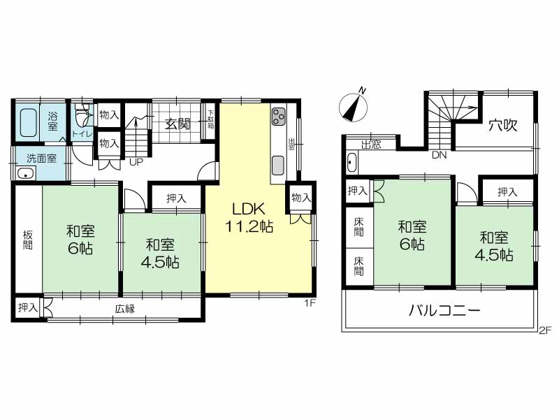 | 間取り | 4LDK( 和室 4.5・6・4.5・6 帖 / LDK 11.2 帖 ) | ||