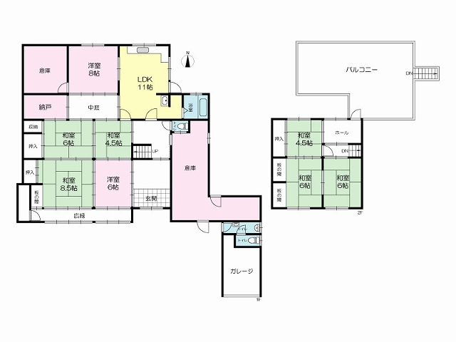 | 間取り | 8SLDK( 洋室 8・6 帖 / 和室 8.5・6・6・6・4.5・4.5 帖 / SLDK 11 帖 ) | ||