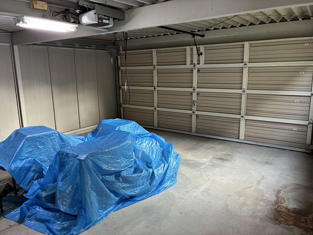 車庫ガレージ(平成5年築、軽量鉄骨造、31.33㎡)には2台駐車可能!