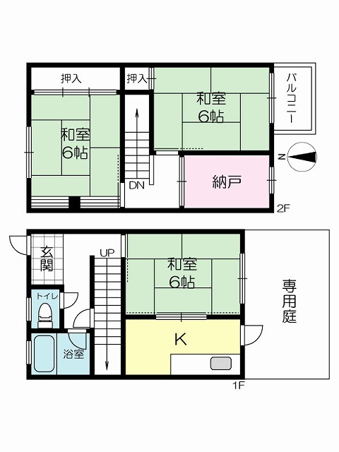 | 間取り | 3K+S( 和室 6・6・6 帖 / K 帖 / 納戸 帖 ) | ||