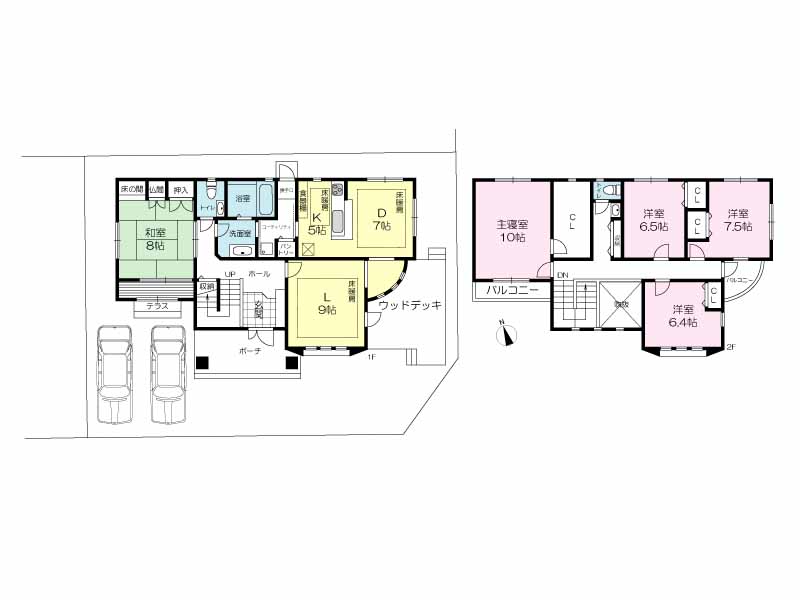 | 間取り | 5LDK( 洋室 10・7.5・6.5・6.4 帖 / 和室 8 帖 / L 9 帖 / DK 12 帖 ) | ||