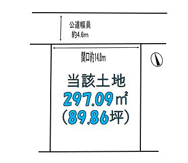 | 接道状況 | [ 北 / 道路幅員 約4.6m 接道幅 公道 約14.8 m ] |